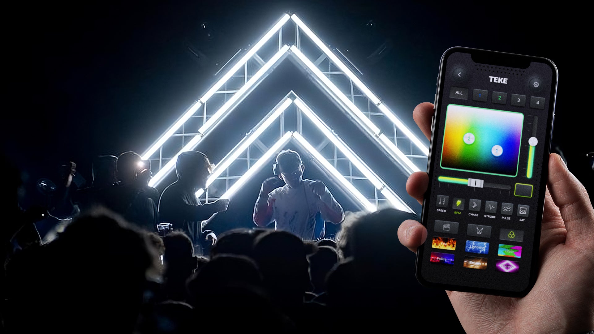 TEKE uses wireless ArtNet DMX over WIFI. You can use any typical house-hold router to connect and control your units with our app or 3rd party ArtNet software with your computer, tablet or phone.